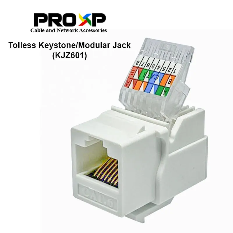 PROXP Keystone/Modular Jack KJZ601 CAT6Spesification :* Brand : PROXP* Model : Cat 6* Collor : White* Gold-plated* Tolless