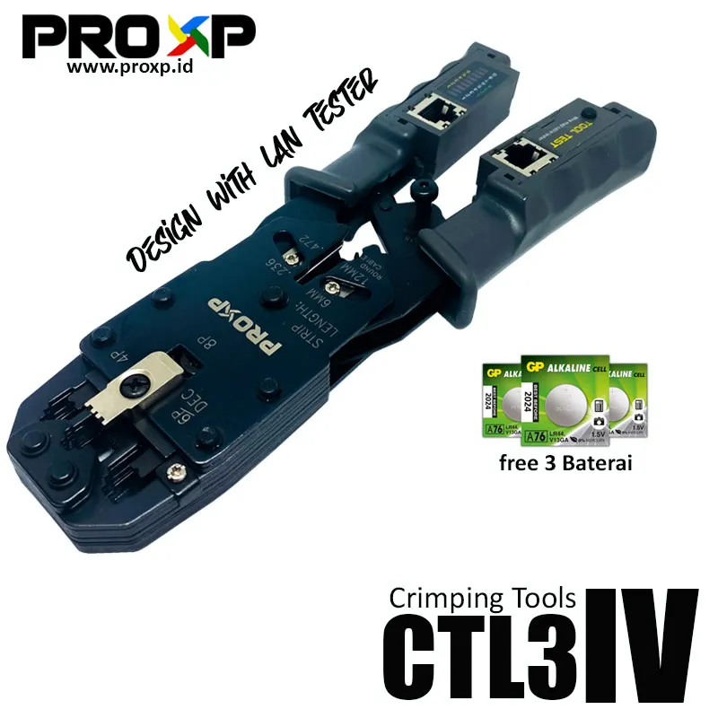 Proxp Crimping tool with cable tester CTL3-04 - Free Baterai